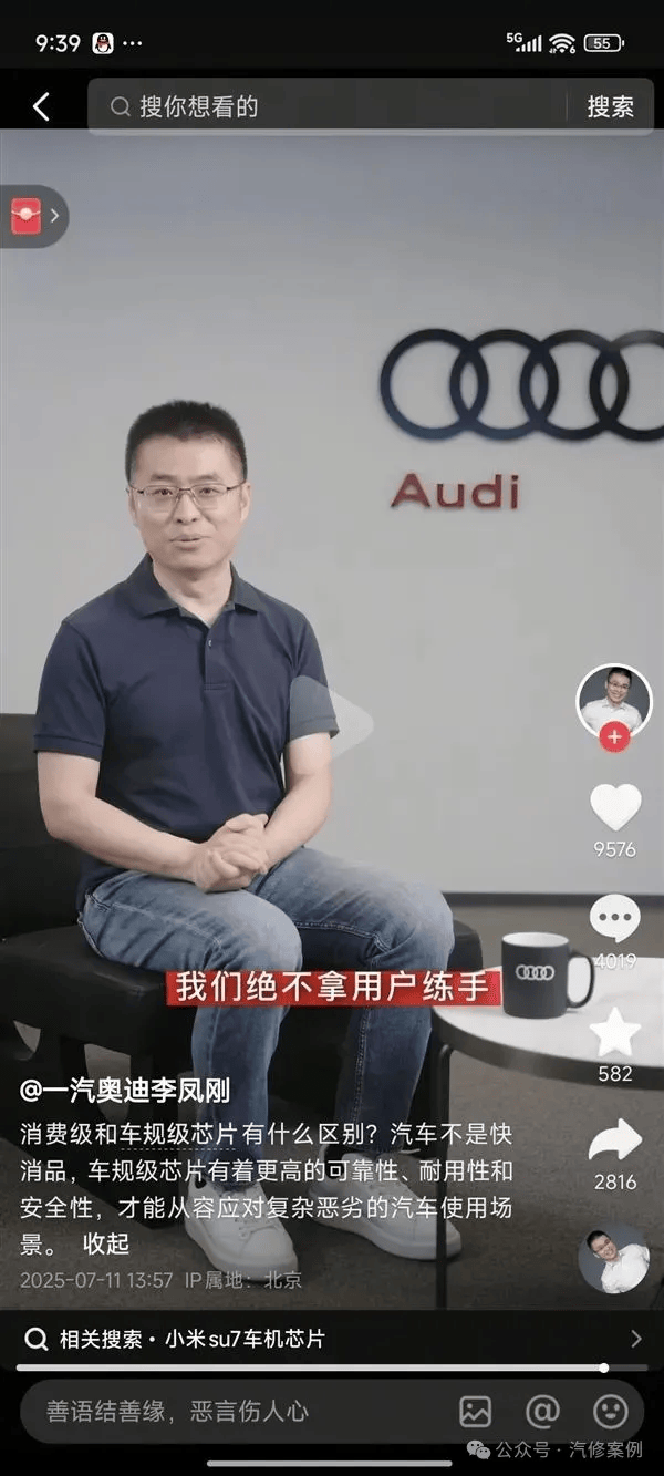 近期,圍繞車規(guī)級芯片與消費(fèi)級芯片在汽車應(yīng)用中的爭議持續(xù)發(fā)酵。一汽奧迪銷售有限責(zé)任公司執(zhí)行副總經(jīng)理李鳳剛通過視頻公開闡述了兩者間的顯著差異,并表明了奧迪的立場。