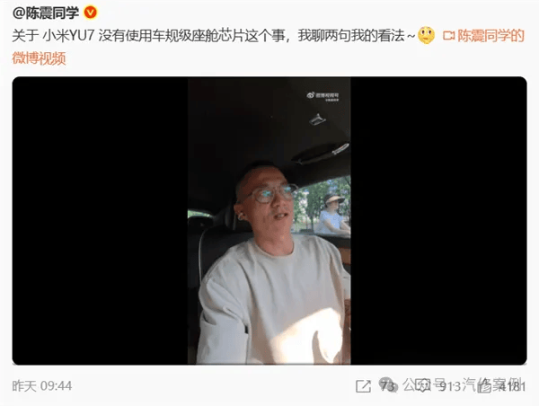 針對這一爭議,汽車博主陳震也發(fā)表了看法。他認(rèn)為,在小米YU7的座艙部分使用消費(fèi)級芯片并無不妥。他指出,行業(yè)標(biāo)準(zhǔn)允許在座艙等非關(guān)鍵安全部位使用消費(fèi)級芯片,而動力控制、車身控制等關(guān)鍵系統(tǒng)則必須使用車規(guī)級芯片。他還提到特斯拉此前也曾在座艙部分使用AMD RYZEN消費(fèi)級芯片,并未出現(xiàn)嚴(yán)重問題。