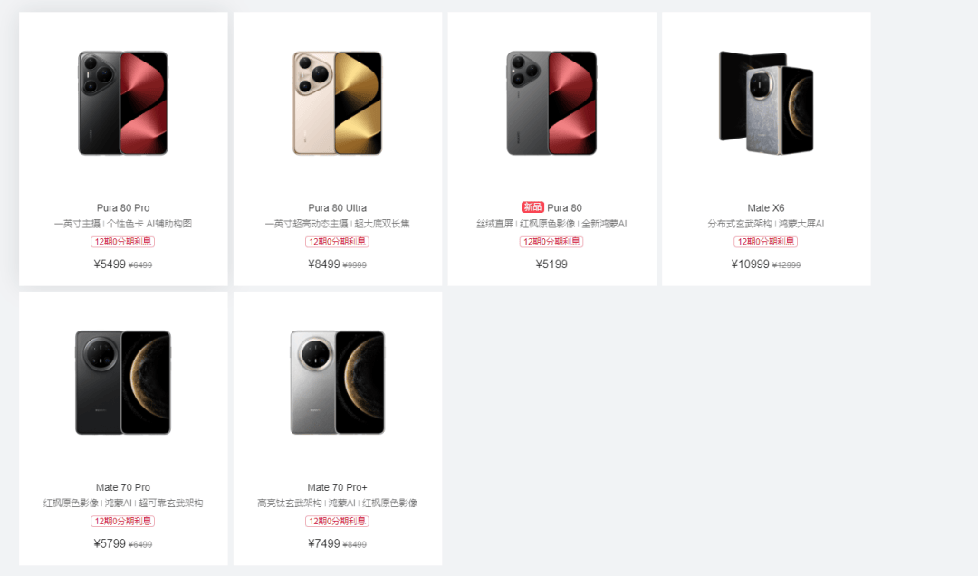 華為手機近期在官方商城開啟了一輪大規模降價活動,涵蓋Mate X6、Pura 80系列及Mate 70系列三款旗艦機型。其中,折疊屏旗艦Mate X6最高直降2000元,Pura 80系列降幅達1500元,Mate 70系列則下調1000元,所有機型均支持12期免息分期。這一動作被市場解讀為"價格戰"升級的信號,尤其在蘋果iPhone 17系列發布后,兩大品牌的市場博弈更顯激烈。