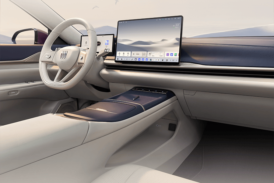 步入車內(nèi),至境L7的座艙設(shè)計(jì)靈感源自“純凈浮島”,環(huán)抱式布局將懸浮中控臺(tái)與環(huán)繞氛圍燈完美融合,營造出溫馨舒適的駕乘環(huán)境。車內(nèi)配備了全新一代別克D型智控方向盤與懷擋設(shè)計(jì),操控功能被創(chuàng)新地集成在兩個(gè)四向按鍵中,操作更加便捷。同時(shí),10.25英寸全液晶儀表、15.6英寸中控屏以及50英寸全景AR-HUD抬頭顯示系統(tǒng)的加入,進(jìn)一步提升了車內(nèi)的科技感。