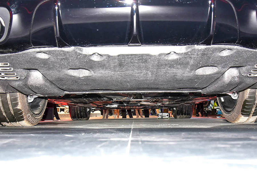 底盤系統采用全鋁鍛造五連桿懸掛,前后懸掛連桿、轉向節及輪轂架均使用輕量化鋁合金材質,簧下質量減少15%。AMG專屬調校的懸掛系統,通過優化連桿布局和彈性運動軌跡,在保證操控精準性的同時提升乘坐舒適性。制動系統配備多活塞卡鉗和打孔通風盤,確保連續制動時的穩定性。