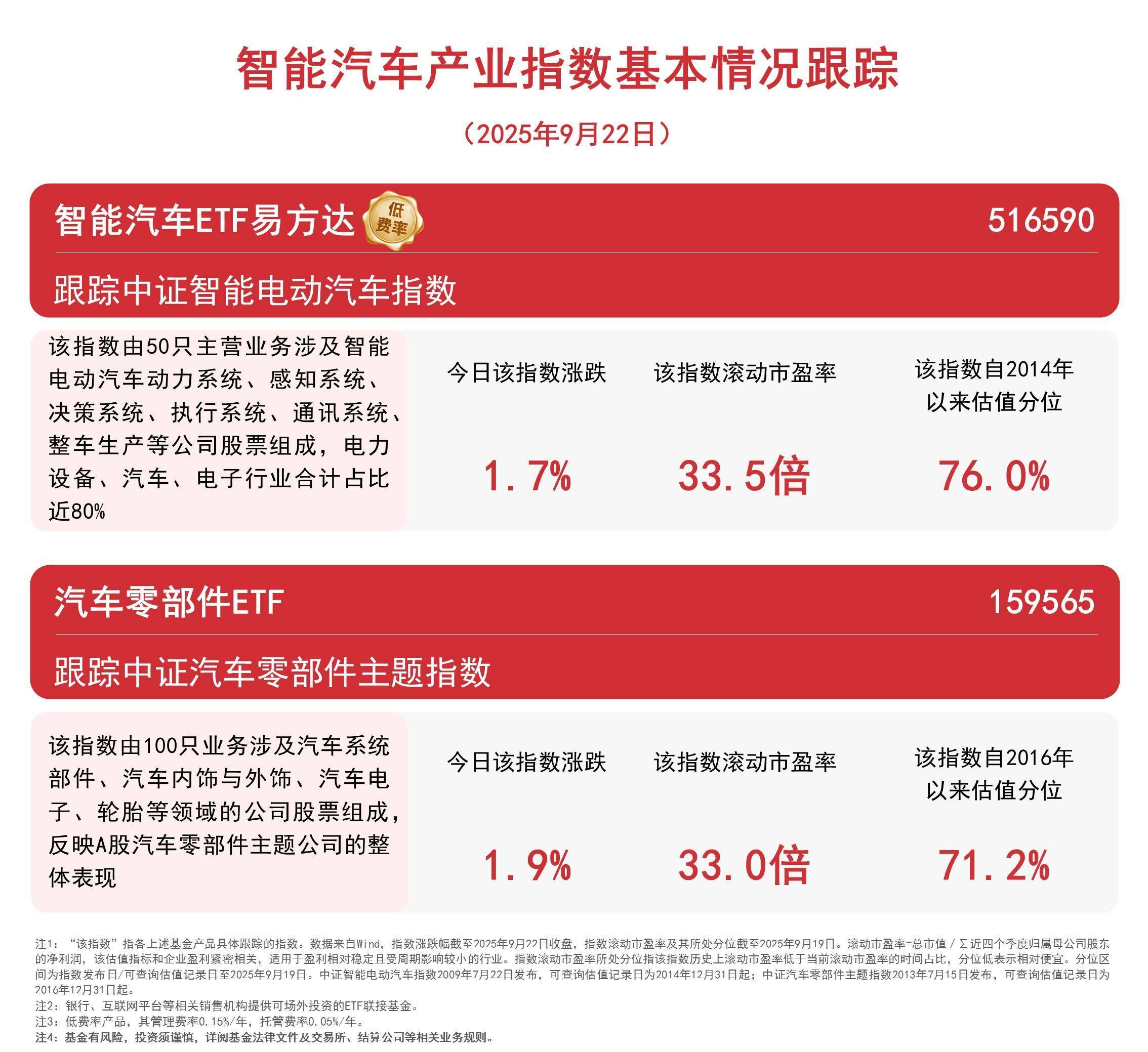 在資本市場(chǎng)表現(xiàn)方面,汽車產(chǎn)業(yè)相關(guān)指數(shù)今日呈現(xiàn)積極態(tài)勢(shì)。其中,中證汽車零部件主題指數(shù)以1.9%的漲幅領(lǐng)跑,中證智能電動(dòng)汽車指數(shù)緊隨其后,上漲幅度達(dá)1.7%,顯示出市場(chǎng)對(duì)汽車產(chǎn)業(yè)鏈細(xì)分領(lǐng)域的持續(xù)關(guān)注。