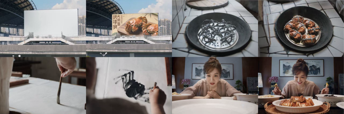 這一切在姜妍真正品嘗到「看不見的主菜」后迎來了反轉,剛才令人費解的畫面依次閃回:空白的廣告牌、籠筐、空盤、淮安人的餐桌上……霎時間都被滿膏滿黃的洪澤湖大閘蟹填滿。短片巧妙的視覺語言反差,既為觀眾揭開了伏筆的謎底,更將「看不見的鮮美」轉化為「嘗得到品質」,用創意敘事為因「名氣還不是很大」而少被看見的洪澤湖大閘蟹正名:品質不應由名氣定義,淮安特產洪澤湖大閘蟹,品質比名氣更響亮。