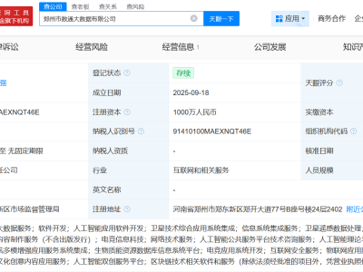 鄭州市數(shù)通大數(shù)據(jù)公司登記成立 注冊資本1000萬
