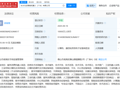 領益智造在深圳成立機器人科技公司 注冊資本1000萬
