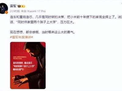 為給即將舉行的年度演講預熱,雷軍在三小時內連續發布三條微博。他透露今年演講主題定為《改變》,將首次公開小米玄戒芯片的研發歷程,以及小米汽車項目背后的決策細節。這兩個項目被視為小米技術立業戰略的關鍵落子,其發展軌跡或將影響公司未來十年的技術布局。