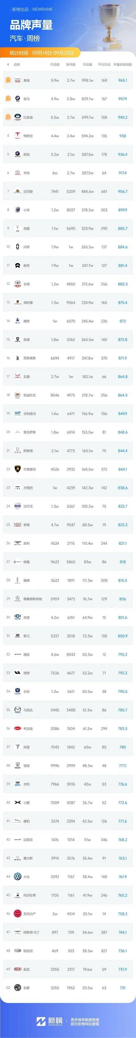 高端市場的競爭策略呈現差異化特征。邁巴赫雖僅發布7441條作品,但憑借651次的平均互動量躋身第七,其內容精準觸達高端用戶對品質的追求,通過少而精的傳播實現高效轉化。這種“精準內容+情感共鳴”的組合模式,與別克“實用攻略+場景關聯”的策略形成鮮明對比,卻均實現了聲量突圍。