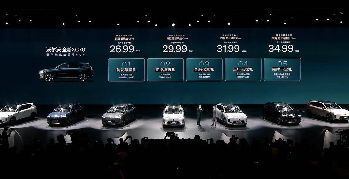 在上海西岸國際會展中心,沃爾沃品牌迎來了其首款超級混動SUV——全新XC70的盛大上市。此次共推出四款不同配置車型,限時參考尊享價從26.99萬元起,為消費者提供了更多選擇。