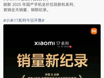 今日,小米17系列手機正式開啟首銷,市場反響熱烈。小米官方發布消息稱,小米17全系機型在開售僅5分鐘后,便成功刷新了2025年國產手機全價位段新機系列的首銷全天銷量與銷額紀錄,展現出強勁的市場競爭力。