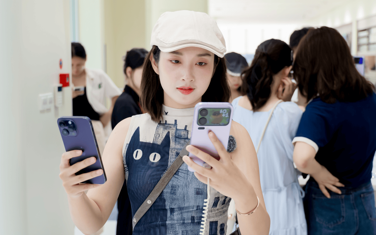 消費者周女士對背屏自拍功能贊不絕口,稱其解決了多人合影與妝容細節拍攝的痛點。該功能允許用戶通過主攝進行高畫質自拍,超廣角模式適合多人場景,長焦模式則可捕捉面部細節。背屏還支持一鍵分享取餐號、二維碼等信息,進一步拓展使用場景。