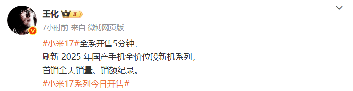 小米集團(tuán)董事長(zhǎng)雷軍通過(guò)社交平臺(tái)補(bǔ)充說(shuō)明,小米17 Pro Max單款機(jī)型表現(xiàn)尤為突出,不僅打破同價(jià)位段首銷日銷售紀(jì)錄,更在系列總銷量中占比超過(guò)半數(shù)。他特別向消費(fèi)者致謝,強(qiáng)調(diào)這一成績(jī)?cè)从谟脩舻某掷m(xù)支持。