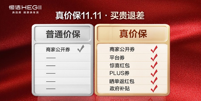2025年雙11即將到來,恒潔京東自營旗艦店將進一步升級消費體驗,率先推出「真價?!狗眨w平臺補貼、優惠券、紅包等所有公開可得優惠,買貴即退差,徹底打破價格迷霧;同時,針對有煥新需求的用戶,購買指定“四大煥新套餐”即可享受免費拆舊、坑距修復、電路改造等一站式改造服務,讓衛浴升級更省心、更便捷。