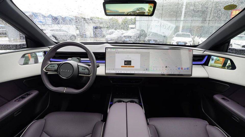 外觀設計方面,EZ-60以概念車ARATA為靈感,采用隱藏式前中網與貫穿式燈帶組合,中央鑲嵌的馬自達LOGO與銳利LED大燈形成強烈視覺沖擊。車身側面通過多曲面設計塑造肌肉感,配合電子外后視鏡與21英寸多幅式輪轂,營造出蓄勢待發的運動姿態。尾部配備高位擾流板與貫穿式尾燈,黑色護板裝飾的后包圍進一步強化層次感。整車尺寸達到4850/1935/1620mm,軸距2902mm,在同級車型中具備顯著空間優勢。