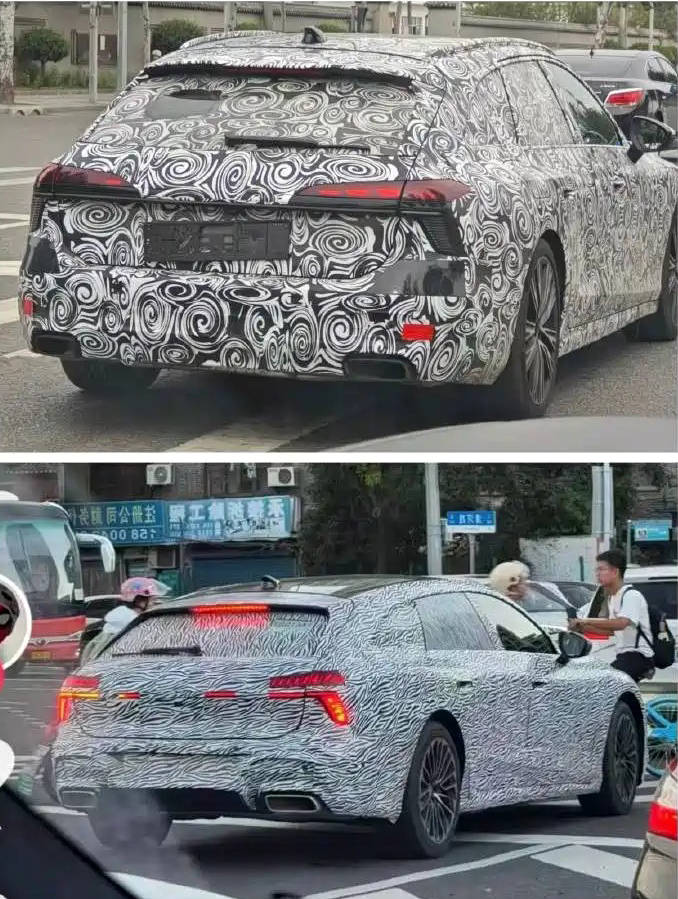 從曝光的諜照中可以看到,上汽奧迪A7L旅行版的車尾設計頗具亮點。其尾燈造型與海外版保持一致,采用了分體式設計,極具辨識度。作為參考,海外版車型所配備的第二代數字OLED尾燈,每側尾燈都集成了198個OLED光源,能夠呈現出動態的燈光效果,為車輛增添了一份科技感。新車還采用了大角度溜背造型,相比海外版,其溜背角度更為明顯,營造出更加動感的視覺效果。車尾下方,雙邊排氣布局與擴散器造型的搭配,進一步提升了車輛的運動氣息。