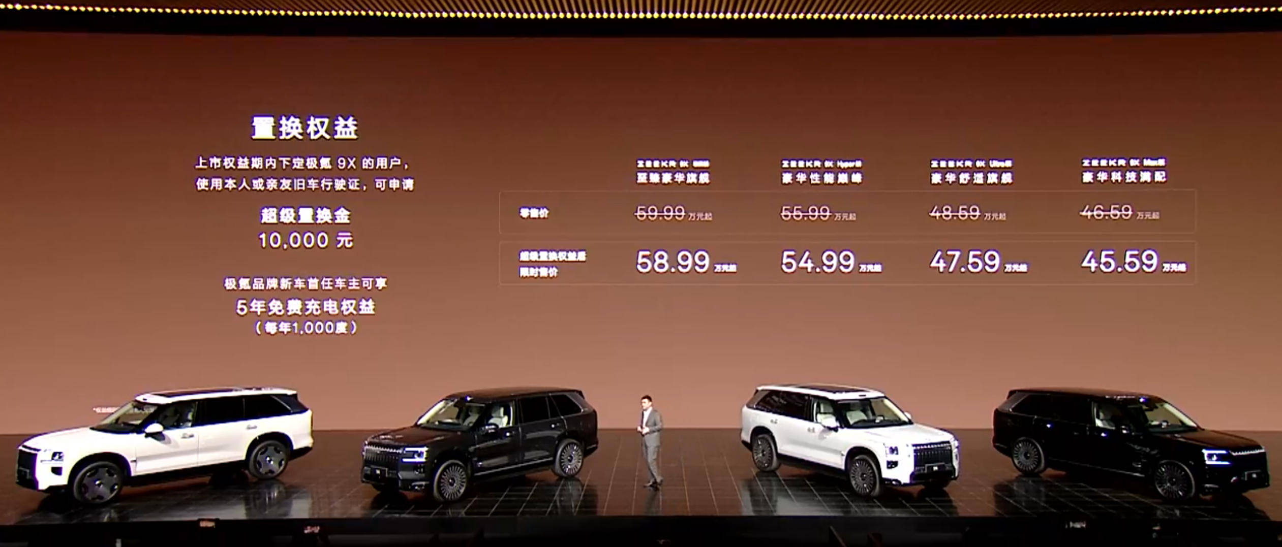 作為極氪品牌首款混動車型,極氪9X以大型SUV定位正式亮相,同步推出“光輝版”與“曜黑版”雙版本,滿足不同用戶群體的個性化需求。新車首發搭載極氪超級電混技術,基于浩瀚-S架構打造,在動力性能與智能配置上實現突破性升級。