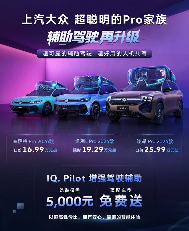 上汽大眾近日宣布,旗下Pro家族2026款燃油車型正式登陸市場,以“油電同智”理念推動(dòng)燃油車智能化邁入全新階段。作為燃油車智能化升級(jí)的標(biāo)桿,Pro家族通過超可靠輔助駕駛、人機(jī)共駕系統(tǒng)及越用越懂用戶的智能座艙,打破燃油車與電動(dòng)車在智能體驗(yàn)上的差距,為用戶帶來“懂路更懂你”的無界出行體驗(yàn)。