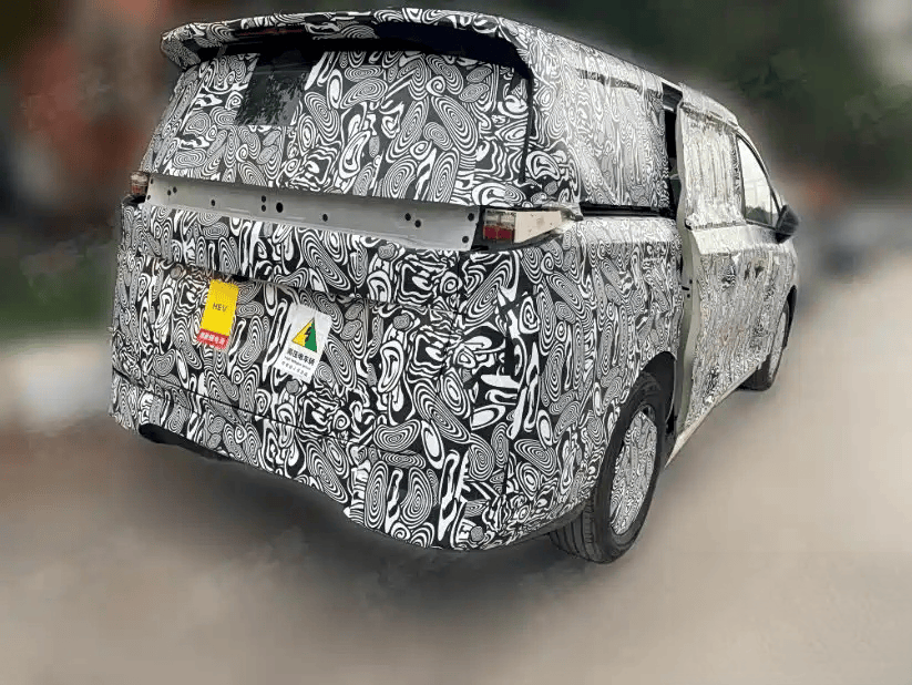 尾部設計通過偽裝貼紙的起伏輪廓可推測,新車將采用貫穿式尾燈組設計,尾門頂部配備大尺寸擾流板,這種運動化元素的加入打破了傳統MPV車型的沉悶感。后保險杠區域的設計細節因偽裝覆蓋暫無法觀察,但整體造型預計將與前臉設計形成呼應。