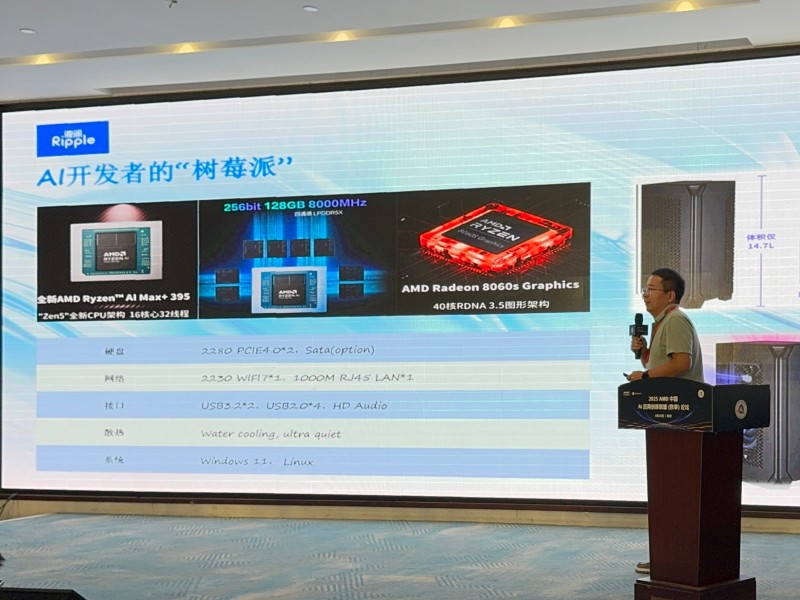 Ripple作為首家基于AMD395的智能體開發平臺受邀參會,現場展示了其推出的支持私有化部署的“Ripple一體機”Mini AI Station解決方案。