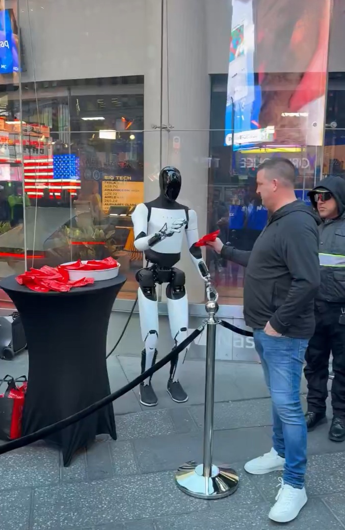 萬圣節前夕,紐約時代廣場迎來一位特殊的“節日使者”——特斯拉人形機器人“擎天柱”(Optimus)。它身著節日裝扮,為過往行人遞上糖果,成為街頭一道獨特的科技風景線。這并非“擎天柱”首次參與公共服務,早在去年特斯拉“We,Robot”發布會上,它便以侍者的身份為嘉賓端送飲品,展現了人機協作的潛力。