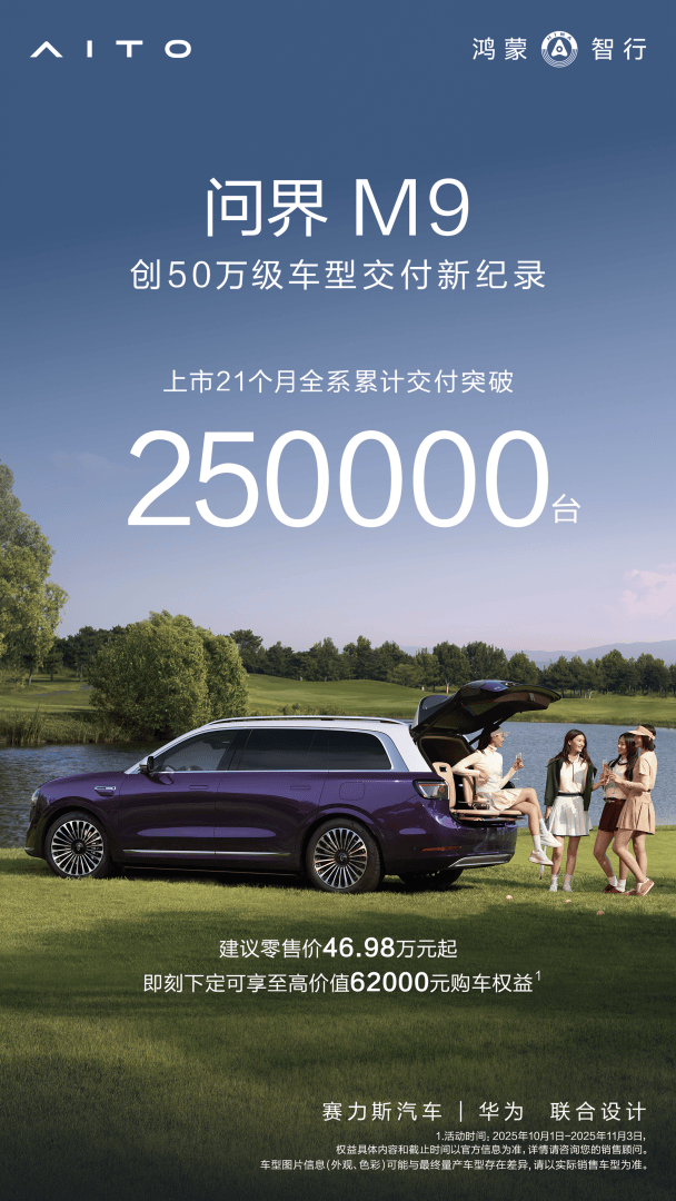 鴻蒙智行近日迎來重要時刻——旗下問界M9車型累計(jì)交付量突破25萬輛,僅用21個月便創(chuàng)下50萬元級新能源車型交付速度新紀(jì)錄,持續(xù)引領(lǐng)中國品牌在高端新能源市場的突破。這一成績不僅體現(xiàn)了產(chǎn)品競爭力,更彰顯了用戶對“智慧出行”理念的深度認(rèn)可。
