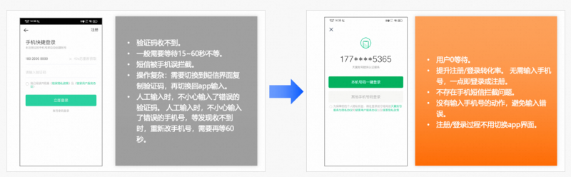 號碼認證服務整合三大運營商特有的數據網關認證能力,升級短信驗證碼方式,應用于用戶注冊、登錄、安全校驗等場景,具有用戶無感知、操作安全、便捷低時延等特點,支持本機號碼校驗和一鍵登錄。相比短信驗證碼,其速度更快(2-4 秒完成)、價格降低 20%、注冊轉化率更高,且基于運營商網關驗證,能避免短信驗證碼易被攔截、篡改、作弊等問題。