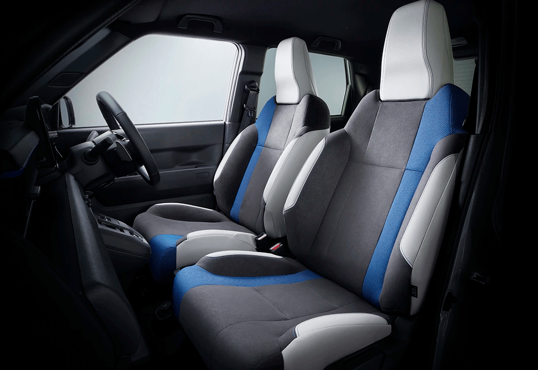 進入車內,Super-N概念車的內飾設計延續了N-One e:的整體思路。它采用了懸浮式的中控屏設計,既方便駕駛者操作,又提升了車內的科技感。同時,車內還保留了物理按鍵,在追求科技感的同時,也兼顧了實用性。整體配色以黑色為主,中控臺和座椅則輔以藍色裝飾,這種色彩搭配既沉穩又不失活力,營造出一種舒適且富有科技感的駕乘環境。