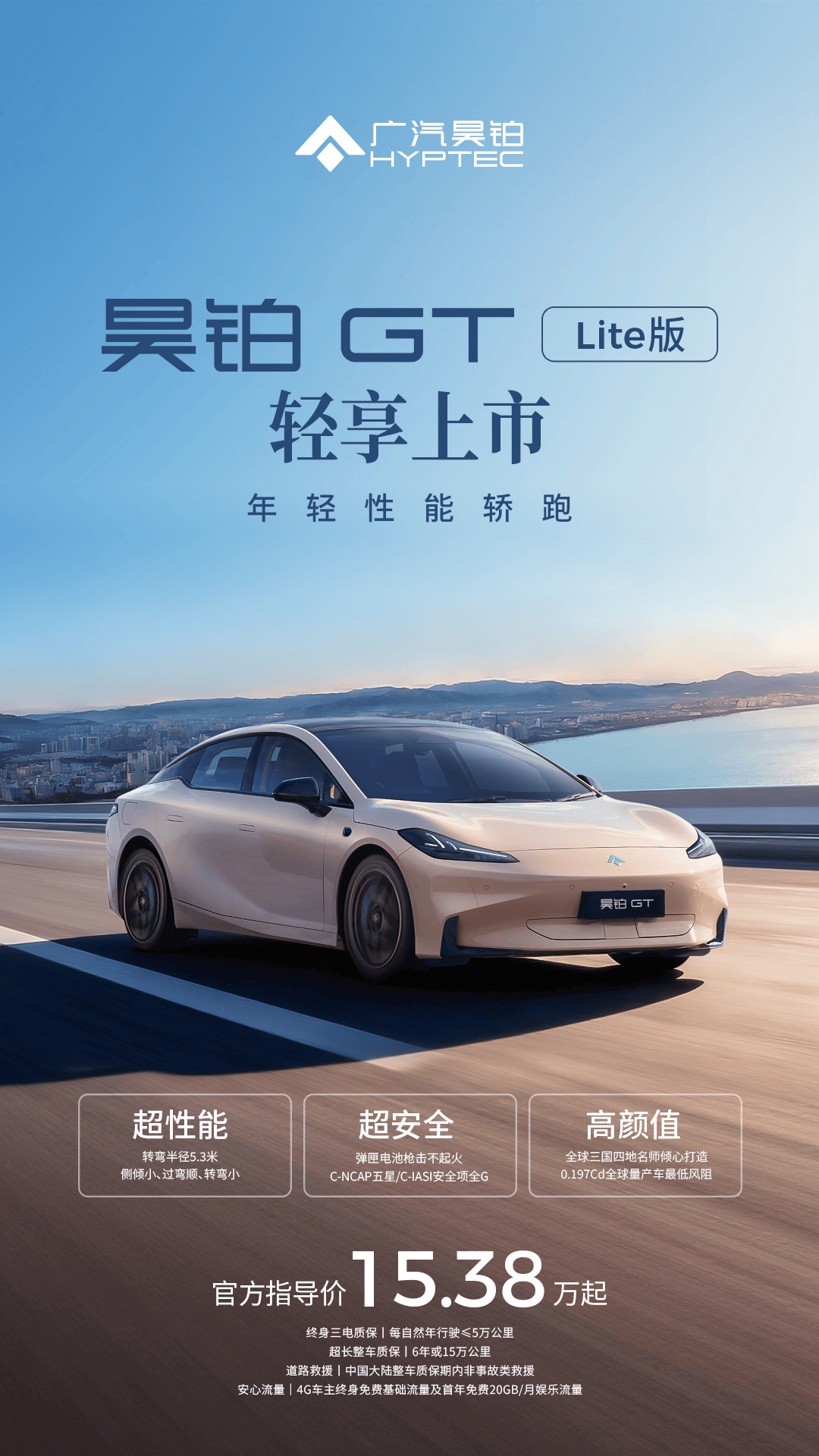 近日,廣汽旗下昊鉑GT Lite版正式登陸市場,此次共推出兩款不同配置的車型,官方指導價分別為15.38萬元與15.88萬元,為消費者提供了更多元化的選擇空間。