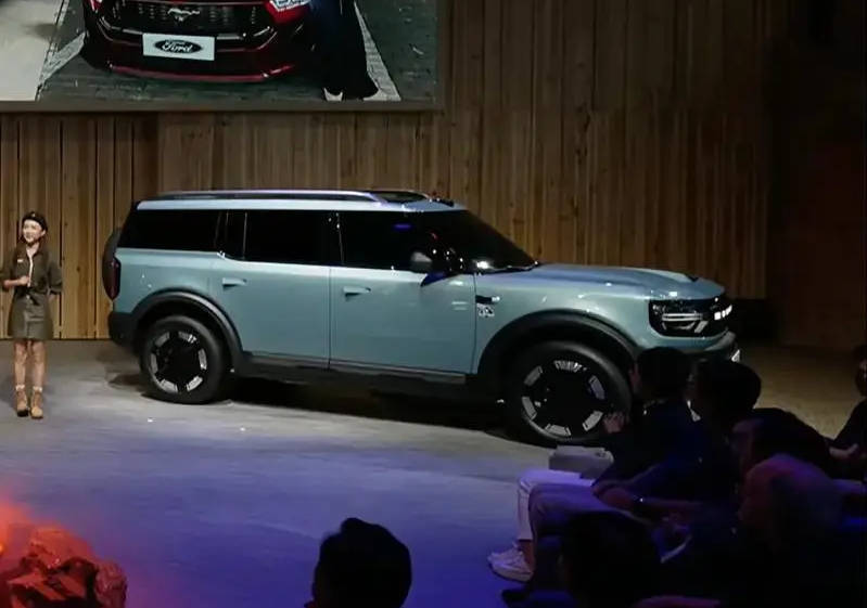 外觀方面,新車延續(xù)烈馬Sport車型的越野基因,同時融入城市SUV設(shè)計元素。前臉采用貫穿式格柵與大燈組一體化設(shè)計,搭配可發(fā)光的“BRONCO”英文標(biāo)識,下方寬厚的前包圍配有橙色裝飾面板和仿拖車鉤造型。車身側(cè)面采用懸浮式車頂設(shè)計,配合前后輪眉的隆起線條,在保持時尚感的同時強(qiáng)化越野屬性。車尾配備外掛式備胎,進(jìn)一步凸顯辨識度。