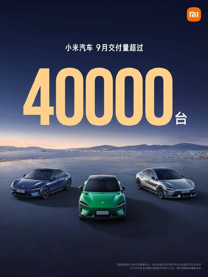 小米汽車今日公布最新交付數據,9月單月新車交付量突破40000臺大關,環比8月30000臺的交付成績增長33%。這一數字不僅刷新了品牌單月交付紀錄,更標志著其連續兩個月實現交付量躍升——8月首次突破3萬臺后,9月再攀高峰。