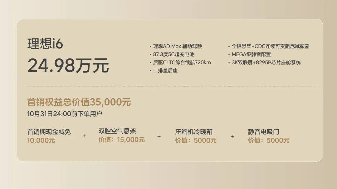 近期車市最受矚目的新車,非理想i6莫屬。這款純電SUV在試駕階段便引發廣泛討論,其23.98萬元的首銷期定價配合空懸、電吸門、冰箱等配置,讓市場感受到理想汽車的誠意。