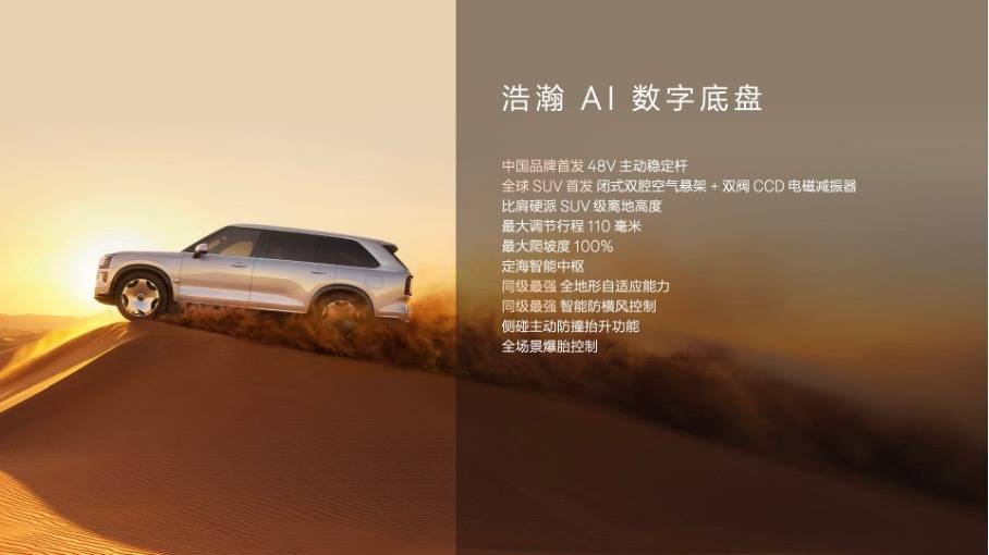 在底盤技術(shù)領(lǐng)域,極氪9X首發(fā)搭載浩瀚AI數(shù)字底盤,標(biāo)配閉式雙腔空氣懸架、雙閥CCD電磁減振器及48伏主動(dòng)穩(wěn)定桿技術(shù),實(shí)現(xiàn)0.2秒內(nèi)80毫米舉升,動(dòng)態(tài)側(cè)傾接近“零側(cè)傾”。該底盤首次引入AI算力,通過定海智能中樞實(shí)現(xiàn)姿態(tài)控制從“事后跟隨”到“提前預(yù)判”的進(jìn)化,即使在120公里/小時(shí)高速濕滑路面同側(cè)雙輪爆胎的極端工況下,仍能穩(wěn)穩(wěn)剎停。其智能全地形自適應(yīng)能力可自動(dòng)識(shí)別深雪、泥地、沙地等7種地形,并匹配專屬駕駛模式。
