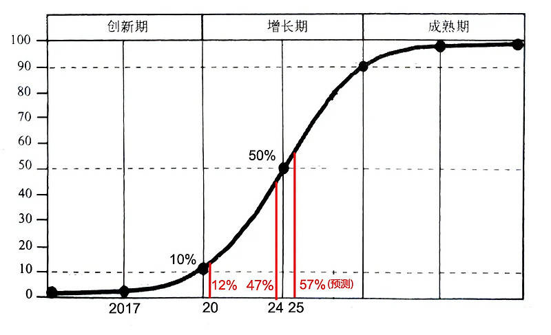 當前,中國新能源車市場雖取得顯著成績,但整體股價表現(xiàn)不盡如人意。隨著中國股市進入牛市,汽車股走勢尚顯疲軟,一旦市場結(jié)束牛市或進入調(diào)整期,汽車股可能面臨更大壓力。根據(jù)S型曲線理論,行業(yè)在滲透率由50%上升至90%的過程中,將迎來淘汰賽勝利者的股價大牛市。對于投資者而言,需密切關(guān)注行業(yè)動態(tài),把握投資時機。