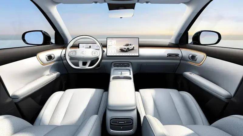 內飾設計方面,Q05采用“舒適環抱+清爽治愈”理念,以環繞式地平線布局營造自然包裹感。儀表臺、門板及副儀表區域大面積覆蓋軟包材質,通過不同材質與色彩的碰撞,形成山水層疊IP嵌飾板的懸浮視覺效果。科技配置上,車輛配備10.17英寸全液晶儀表與15.6英寸2.5K高清懸浮中控屏,為駕駛者提供清晰直觀的信息交互體驗。