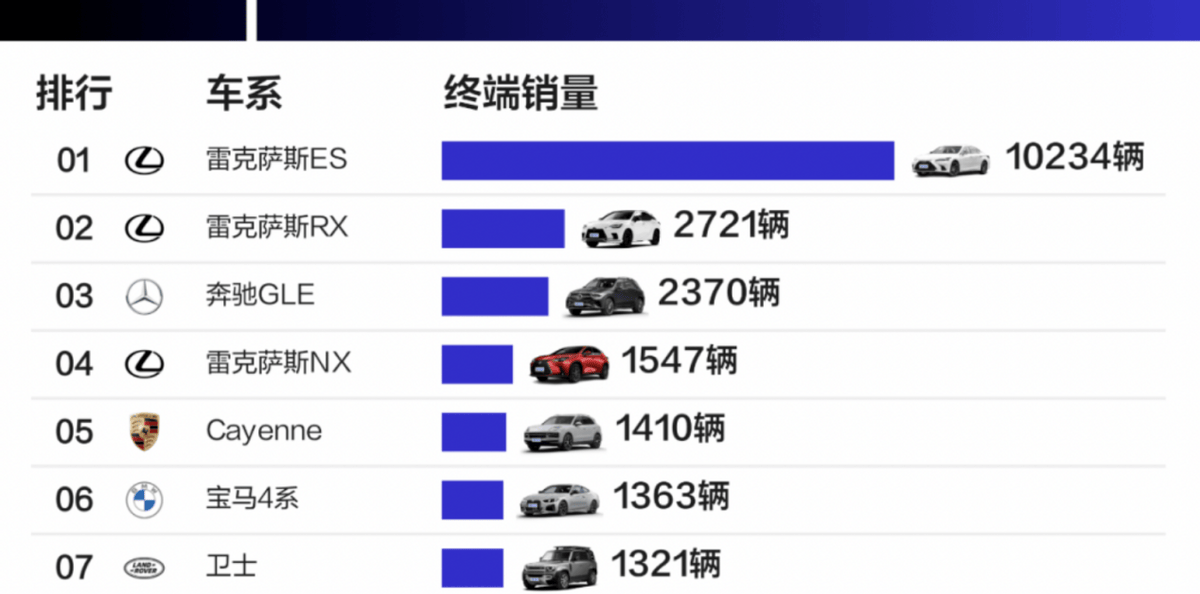 其他進口車型中,奔馳GLE售出2370輛,寶馬4系售出1363輛。保時捷卡宴和帕拉梅拉分別售出1410輛和1054輛,豐田埃爾法則售出652輛。從年度累計銷量來看,雷克薩斯ES依然領跑,雷克薩斯RX和奔馳GLE緊隨其后,形成穩定的銷量梯隊。