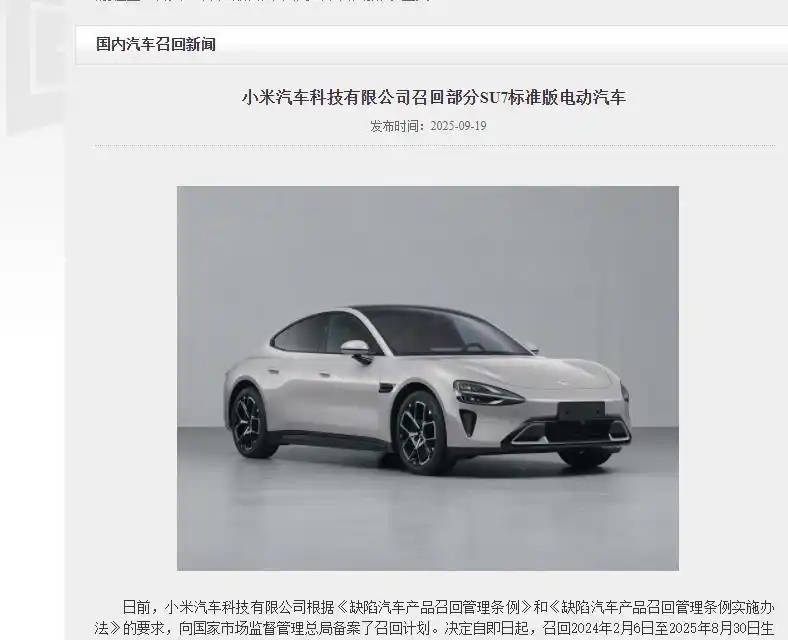 近期,小米汽車(chē)在市場(chǎng)上表現(xiàn)活躍,9月交付量突破4萬(wàn)輛,旗下小米YU7車(chē)型交付量也穩(wěn)步提升。然而,此前小米SU7因召回11萬(wàn)輛車(chē)輛引發(fā)關(guān)注,市場(chǎng)監(jiān)管總局主管媒體《產(chǎn)品可靠性報(bào)告》旗下賬號(hào)“中國(guó)質(zhì)量報(bào)告”指出,此次召回并非常規(guī)OTA升級(jí),而是因調(diào)查后被動(dòng)實(shí)施,這一消息讓小米汽車(chē)一度處于輿論風(fēng)口。