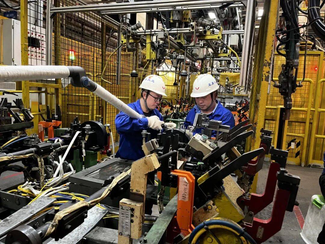 智能智造部與各基地聯動,支持新產線快速高質量投入使用。車身工程科優化視覺系統、IGV路線及機器人軌跡等關鍵環節;涂裝工程科完成寶駿、河西基地設備改造與工藝升級;總裝工程科實現冷卻液切換、產線改造及節拍提升。面對時間緊、任務重、人員短缺等挑戰,全員主動放棄休假,以“假期不停工、全天候守護”的擔當,突破項目瓶頸。