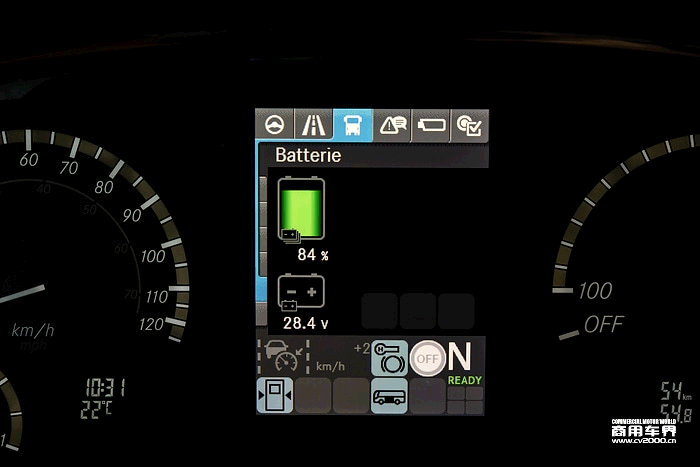 eIntouro提供兩種車身長度選擇:12.18米標準版與13.09米加長版eIntouro M,座椅配置覆蓋50座至63座,滿足不同運營場景需求。其核心動力系統采用磷酸鐵鋰(LFP)電池技術,單/雙電池包配置分別提供207千瓦時與414千瓦時總容量。首組電池包固定于前橋后方以優化重量分布,選裝第二組電池則位于原發動機艙位置。該電池組經過梅賽德斯-奔馳eActros卡車驗證,支持800伏工作電壓,日歷老化性能優異,壽命可達15年。在雙電池包配置下,車輛續航里程最高達500公里,充電功率最高400千瓦(單電池包版本為225千瓦)。