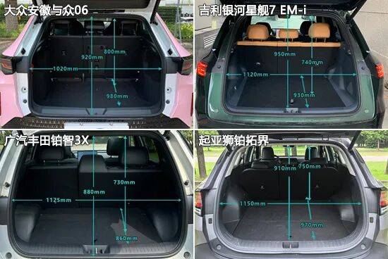 充電接口配置方面,四款車型均配備4個USB接口。吉利銀河星艦7 EM-i和廣汽豐田鉑智3X的接口涵蓋Type-A和Type-C兩種類型,實用性更強。起亞獅鉑拓界前排配備1個Type-A和1個Type-C接口,后排配備2個Type-C接口,兼容性稍遜。大眾安徽與眾06的接口均為Type-C類型,對移動設(shè)備的兼容性較差。不過,大眾安徽與眾06全車提供2個12V電源接口,用電需求滿足度更高。