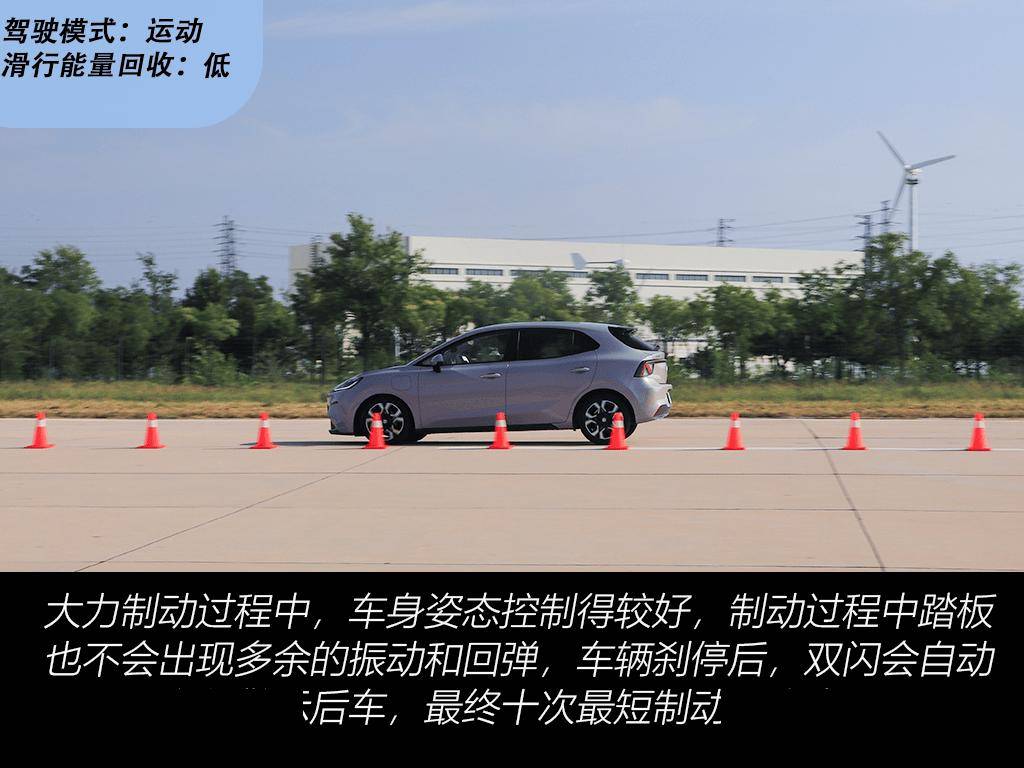 動(dòng)力系統(tǒng)方面,MG4采用前置單電機(jī)布局,最大功率120千瓦,峰值扭矩250牛·米,匹配朝陽(yáng)RADIAL RP76低滾阻輪胎。實(shí)測(cè)數(shù)據(jù)顯示,其0-100km/h加速時(shí)間為8.02秒,0-400米加速用時(shí)16.07秒,尾速達(dá)138.17km/h。在連續(xù)多次加速測(cè)試中,動(dòng)力輸出穩(wěn)定性表現(xiàn)突出,未出現(xiàn)明顯衰減。制動(dòng)系統(tǒng)采用前通風(fēng)盤式+后盤式組合,100-0km/h最短制動(dòng)距離僅36.77米,連續(xù)10次測(cè)試后最長(zhǎng)制動(dòng)距離為38.78米,熱衰減控制優(yōu)于同級(jí)車型。不過(guò),朝陽(yáng)輪胎在極限工況下易出現(xiàn)打滑現(xiàn)象,成為性能短板。