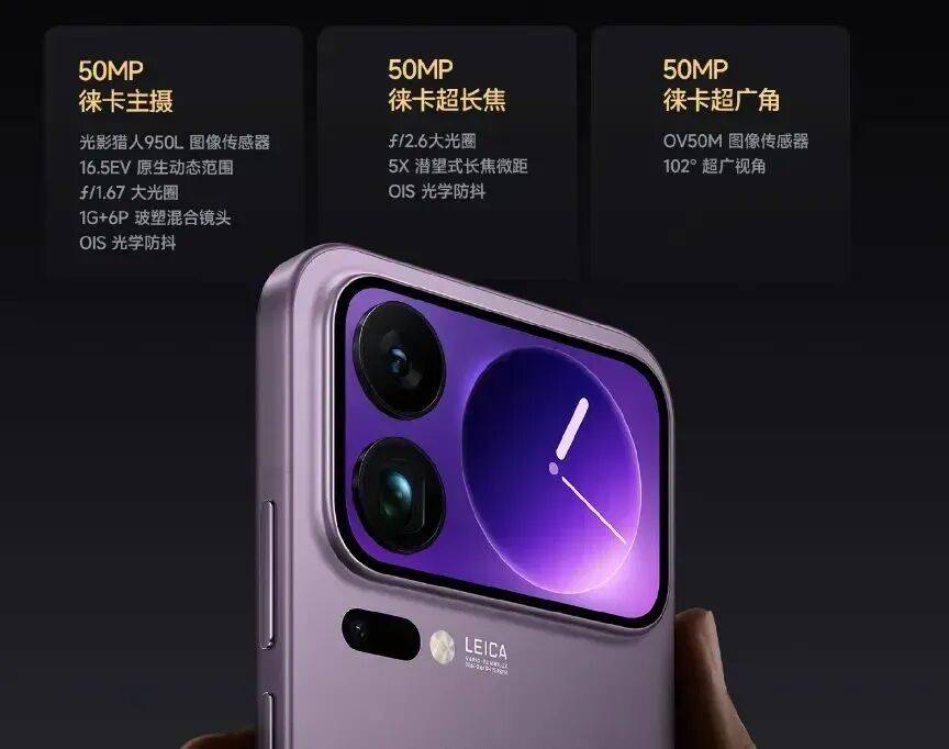 在產品配置方面,小米17系列延續(xù)高端定位。標準版采用6.3英寸超窄邊框屏幕,搭載第五代驍龍8至尊版處理器,配備7000mAh金沙江電池,支持100W有線快充與50W無線快充。影像系統(tǒng)采用徠卡三攝組合,包括5000萬像素主攝(光影獵人950傳感器)、5000萬像素浮動長焦(10cm最近對焦距離)及5000萬像素超廣角鏡頭,前置相機同樣達到5000萬像素。