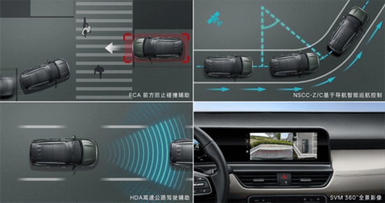 安全性能是另一大亮點。該車搭載了FCA前方防碰撞輔助(可識別車輛、行人、自行車及交叉路口)、LKA車道保持輔助、SCC智能巡航控制等20余項駕駛輔助功能,其中HDA高速公路駕駛輔助和SVM360°全景影像等同級罕見配置,構建了從城市道路到高速場景的全覆蓋安全網絡。例如,FCA系統不僅能預警前方車輛,還能探測行人及自行車,有效降低事故風險;LKA系統則在車輛無意識偏離車道時,通過方向盤震動和輕微轉向力糾正路線。