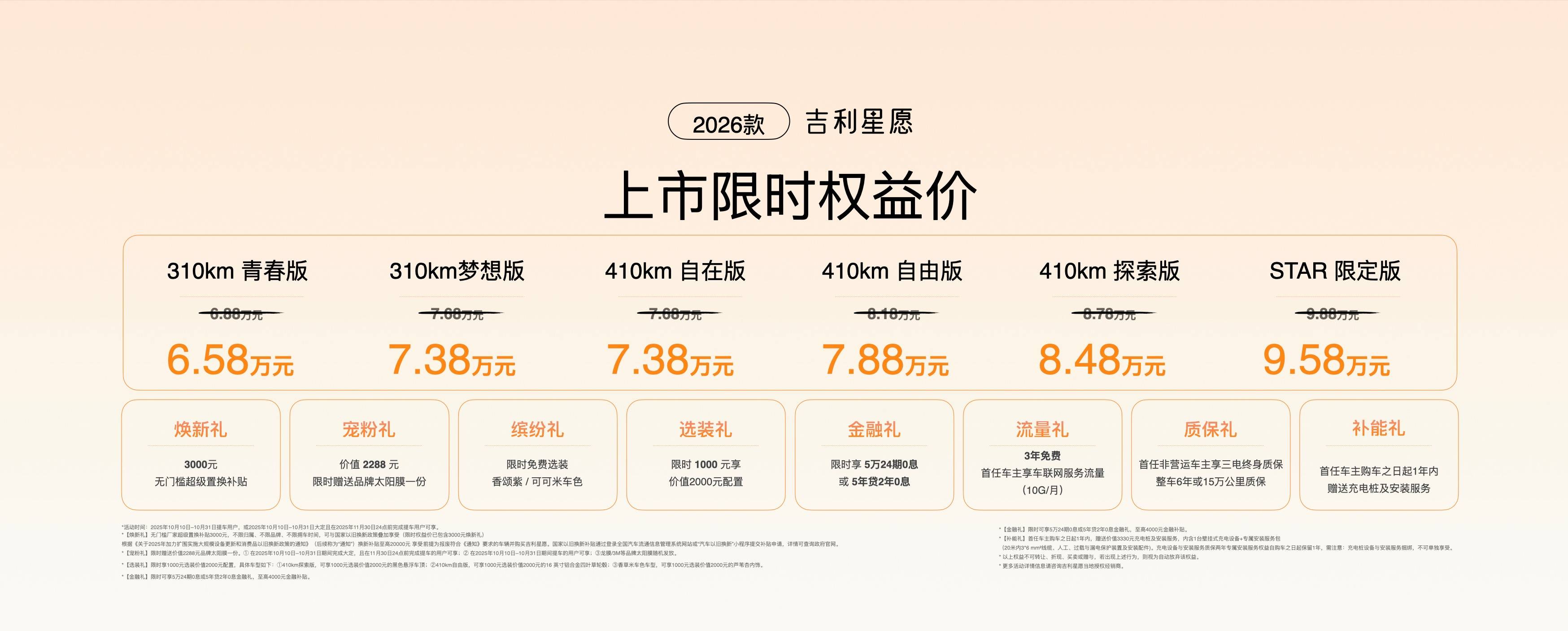 2026款吉利星愿6.58萬起售,新增車色與STAR版,產品力再升級