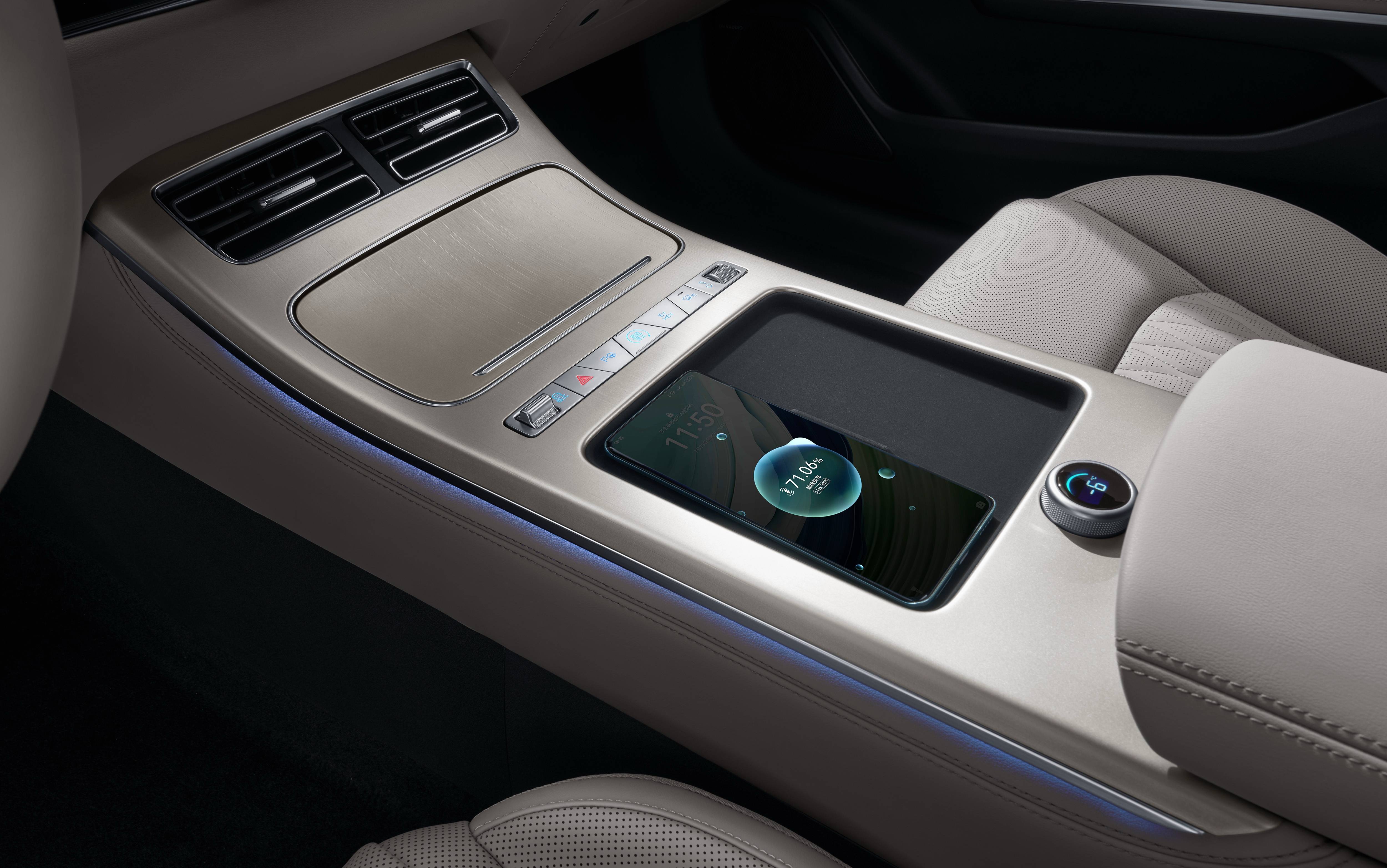 除了續(xù)航能力的提升,新車在設(shè)計(jì)上也進(jìn)行了諸多優(yōu)化。中網(wǎng)鍍鉻飾條、前大燈裝飾條、車窗鍍鉻、后視鏡以及翼子板裝飾等細(xì)節(jié)均采用了黑化處理,營(yíng)造出更加運(yùn)動(dòng)、時(shí)尚的視覺效果。車內(nèi)中控臺(tái)則用皮質(zhì)面料替代了鋼琴烤漆面板,同時(shí)換裝了懷擋設(shè)計(jì),并對(duì)物理按鍵區(qū)域進(jìn)行了重新布局。新車還新增了無線充電面板和4.5L車載冰箱等實(shí)用配置,進(jìn)一步提升了駕乘體驗(yàn)。