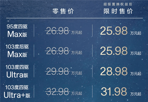 近日,極氪品牌旗下煥新極氪001(2026款)正式開啟市場銷售。此次新車共推出四款不同配置版本,官方指導價區間設定在26.98萬元至32.98萬元之間。同時,消費者還可享受限時疊加的1萬元超級置換金優惠,優惠后實際售價區間為25.98萬元至31.98萬元。