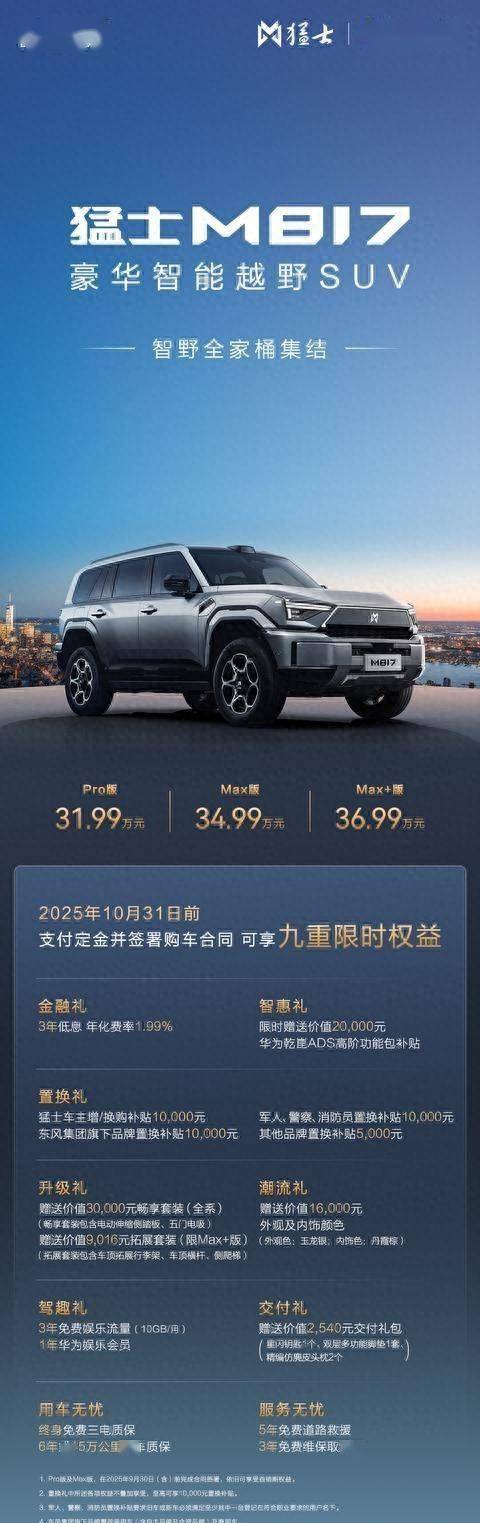 當(dāng)朋友圈被假期出行的“堵車噩夢”刷屏?xí)r,一輛能同時征服城市通勤與戶外探險的新車悄然登場——猛士M817 Max+以36.99萬元起的價格,攜九重限時權(quán)益殺入硬派SUV市場。這輛被網(wǎng)友戲稱為“移動能量站”的新車,究竟能否成為解決出行痛點的終極方案?