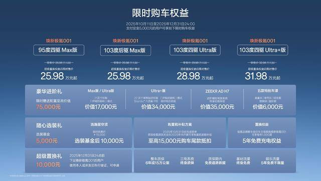 豪華獵裝轎跑市場迎來重磅新品——極氪001煥新版本正式上市。這款傳承經典獵裝基因的車型,通過全面技術革新實現性能躍升,官方指導價26.98萬元起,疊加置換權益后限時起售價25.98萬元。消費者可通過極氪App、官網及全國門店等渠道即刻預訂。