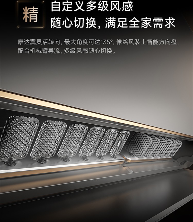 而且這款空調(diào)康達(dá)翼能135°靈活調(diào)節(jié),猶如為空調(diào)裝上了方向盤,可以任意調(diào)整方向,形成包括90°澎湃勁風(fēng)、45°自然柔風(fēng)和0°零感微風(fēng)等三種不同的風(fēng)感模式。