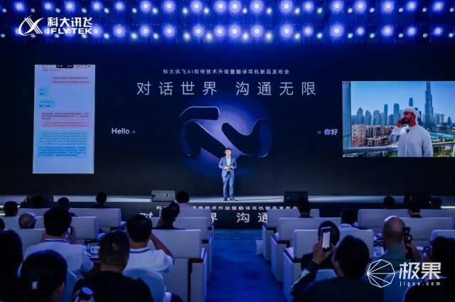 在上海世界會客廳與迪拜Gitex Global科技盛會的聯動舞臺上,科大訊飛以“對話世界,溝通無限”為主題,舉辦了一場AI同傳技術升級暨翻譯耳機新品發布會。這場跨越東西方的技術盛宴,不僅展示了中國AI翻譯技術的最新突破,更通過實時連線迪拜會場,實現了跨洲際低延遲對話演示,引發全球科技界關注。