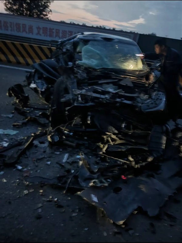 從事故現場的照片可見,車輛受損程度極為嚴重。車頭潰縮區域完全碎裂,擋風玻璃支離破碎,右側兩扇車門在撞擊中脫落,地面上散落著大量汽車零部件,場面觸目驚心。