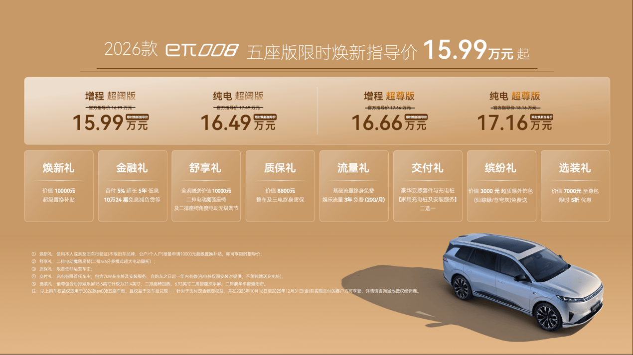 面對用戶共創(chuàng)帶來的挑戰(zhàn),東風(fēng)奕派通過“嚴(yán)選”機(jī)制聚焦關(guān)鍵需求。納米01推出「初心款」與「摯愛款」雙版本共計8款車型,價格區(qū)間錨定在5.88-8.88萬元,實則是將用戶需求分層后給出的精準(zhǔn)解決方案。eπ008五座版提供增程、純電兩種動力和超闊版、超尊版兩種配置,限時價15.99-17.16萬元,背后是對家庭用戶能源偏好與配置需求的嚴(yán)選過濾。這種“款款皆嚴(yán)選”的思路,不僅避免了產(chǎn)品同質(zhì)化,還強(qiáng)化了品牌作為“國家隊”的可靠性——央企背景下的技術(shù)基底,如納米01的節(jié)能新星屬性或eπ008的舒心駕控,為用戶提供了信任背書。
